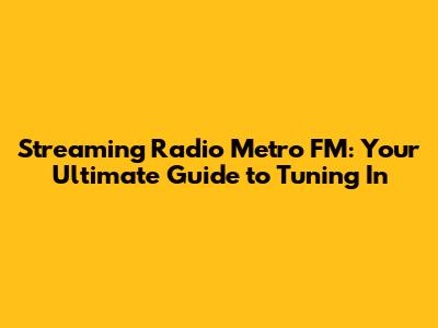 Hey guys! Are you looking to groove to the best beats and stay updated with the latest news and entertainment? Look no further! In this article, we're diving deep into the world of streaming radio Metro FM, your go-to station for all things music, news, and culture. Whether you're at home, at work, or on the go, accessing Metro FM's vibrant content has never been easier. Let's explore how you can tune in and make the most of this incredible radio station.